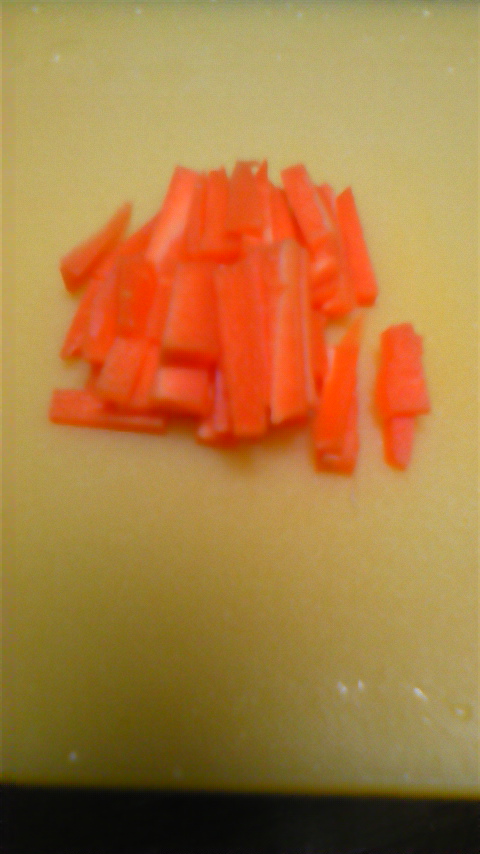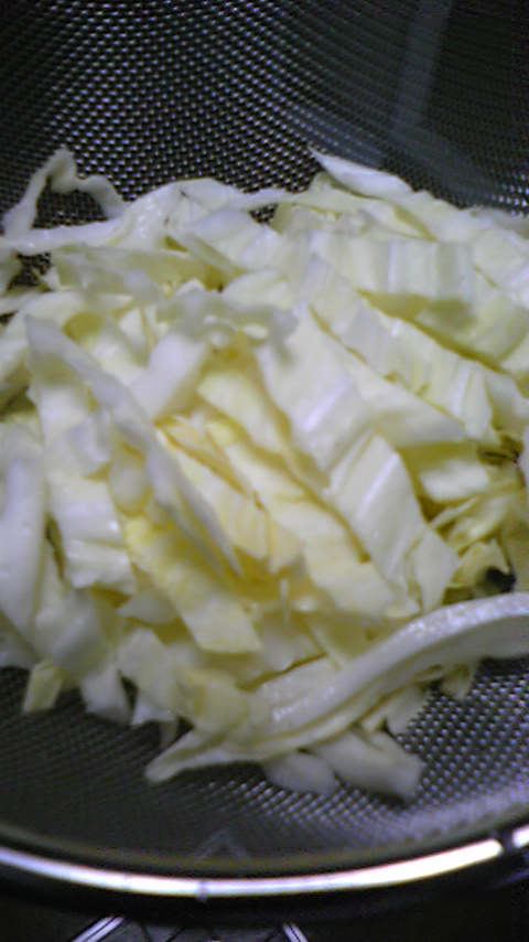 ② ①に 適当に 切った野菜も 投入!! キャベツは、最後に入れました。
