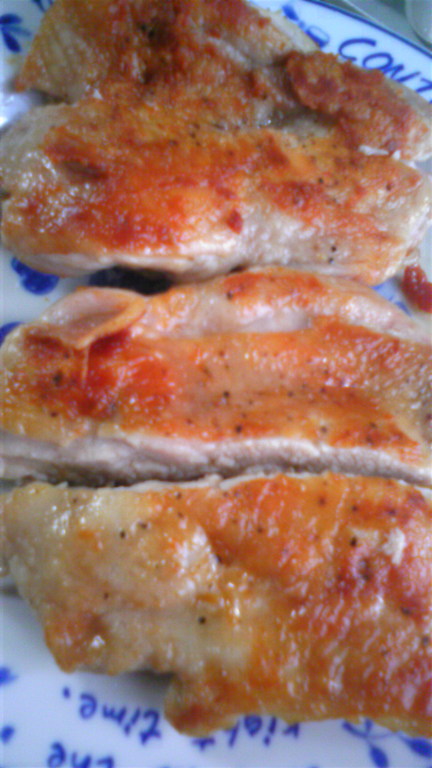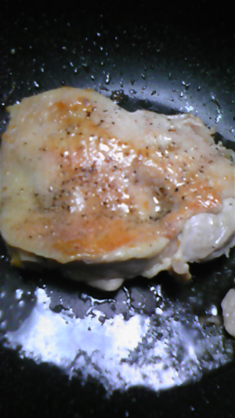 ② 鶏肉 を 両面しっかり焼く。 (ブラックペッパー使いました。)