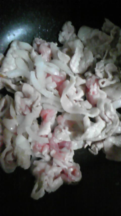 ④ ロースが大体 白くなってきたら、玉ねぎを投入!