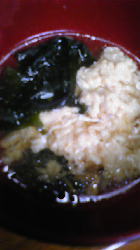 ⑥ お椀に ワカメ と ④ を注いで 完成ッス!!